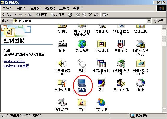 第二步,在“控制面板”中找到“系统”选项后,双击打开(见下图红圈中的部分)。
